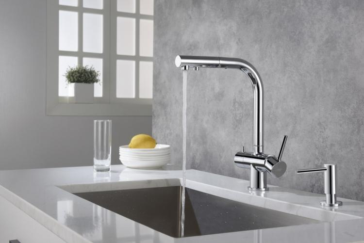 - Bateria dwuobwodowa z wyciąganą wylewką i podłączeniem filtrów do wody