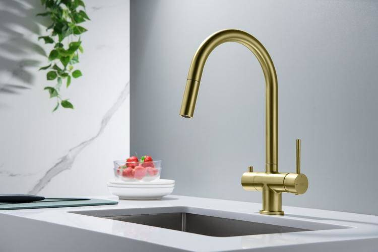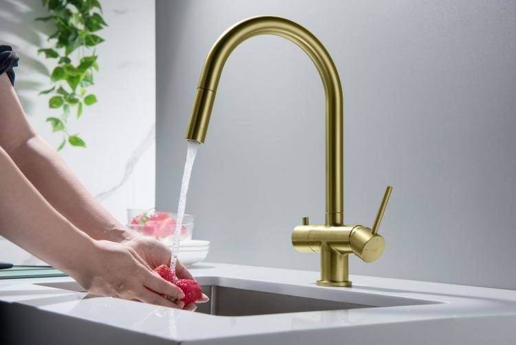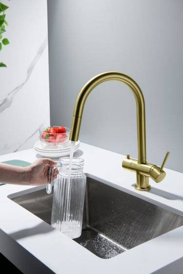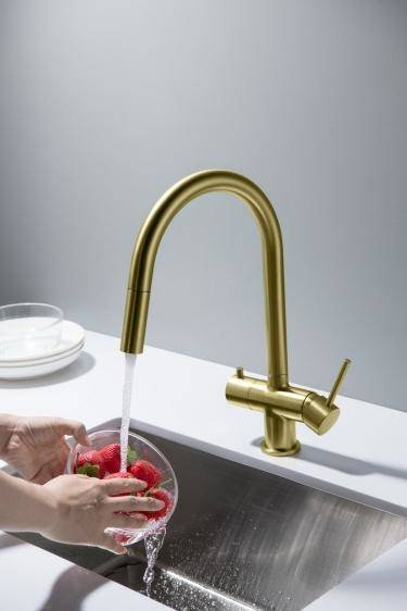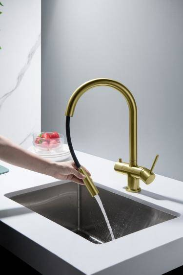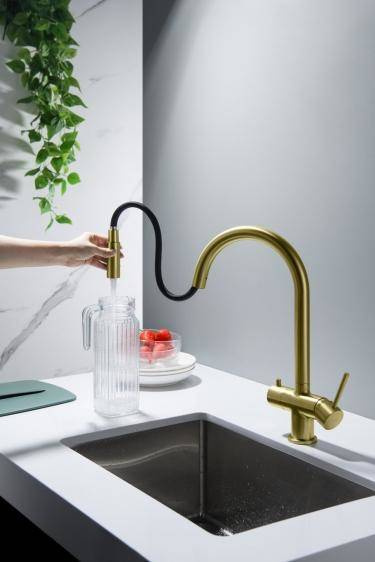 - BATERIA Z PODŁĄCZENIEM DO WODY FILTROWANEJBATERIA Z WYCIĄGANĄ WYLEWKĄ - ABSOLUTNA NOWOŚĆ!Zintegrowany magnes umożliwiający szybkie chowania końcówki wylewki– wykończenie: MOSIĄDZ ANTYCZNY– wylewka obrotowa do 360°– głowice ceramiczne– 2 elastyczne wę