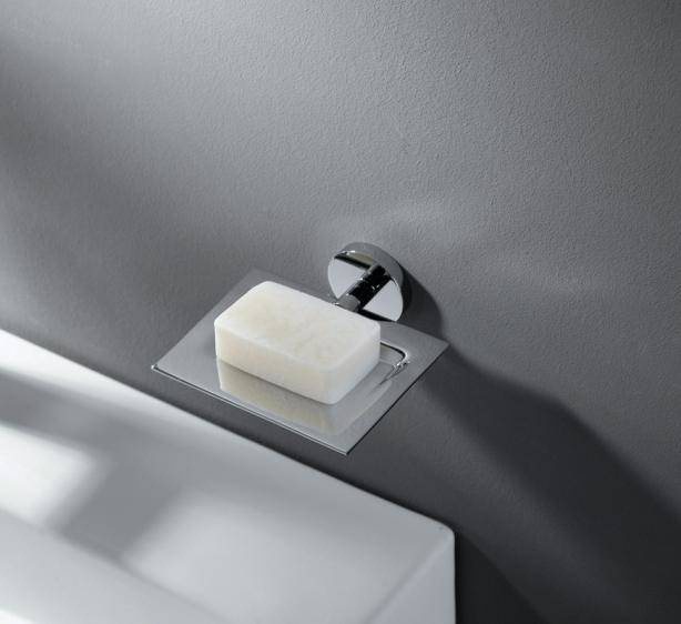 Jej płaska powierzchnia komponuje się z pozostałymi elementami serii, delikatne wgłębienie zapobiega zsuwaniu się mydła, a otworki chronią przed gromadzeniem się wody.