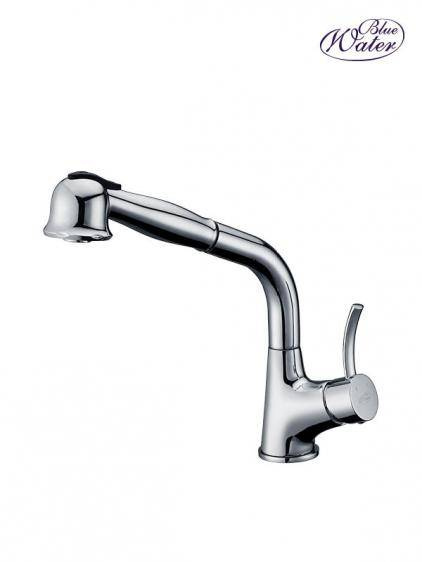 - BATERIA Z WYCIĄGANĄ WYLEWKĄ Z PRZEŁĄCZNIKIEM STRUMIENIA WODY– wykończenie: CHROM– obrotowa wylewka do ok. 165°– głowica ceramiczna– elastyczne wężyki podłączeniowe 3/8“ – 400 mm