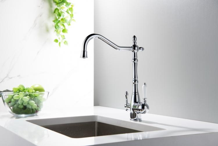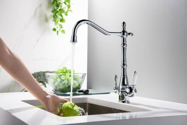 - BATERIA Z PODŁĄCZENIEM DO WODY FILTROWANEJ– wykończenie: CHROM– wylewka obrotowa do 360°– głowice ceramiczne– 2 elastyczne wężyki podłączeniowe 3/8“ – 400 mm– rurka z szybkazłączką na końcuBATERIA Z DWOMA NIEZALEŻNYMI OBWODAMI:– mieszacz wody