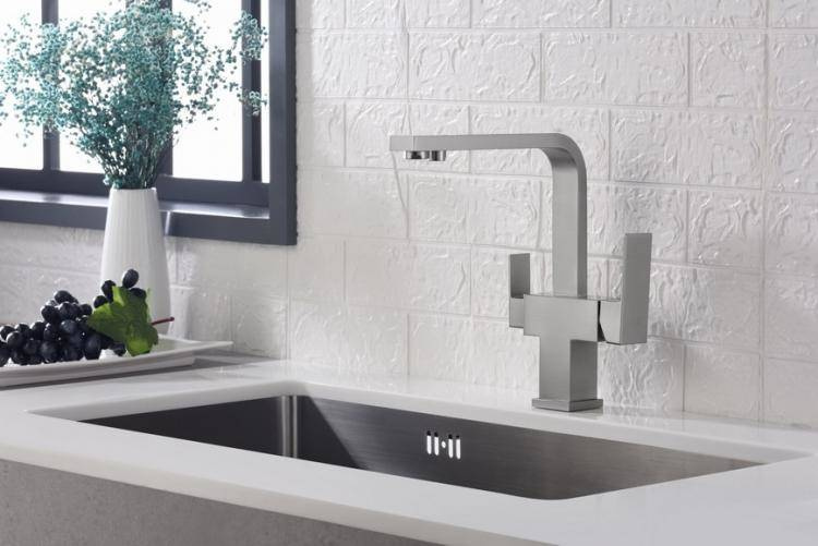 - BATERIA Z PODŁĄCZENIEM DO WODY FILTROWANEJ– wykończenie: kolor STALI– material: mosiądz– wylewka obrotowa do 360°– głowice ceramiczne– 2 elastyczne wężyki podłączeniowe 3/8“ – 400 mm– 1 wężyk podłączeniowy do filtra 1/2” – 400 mm z