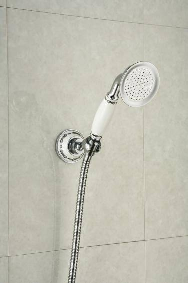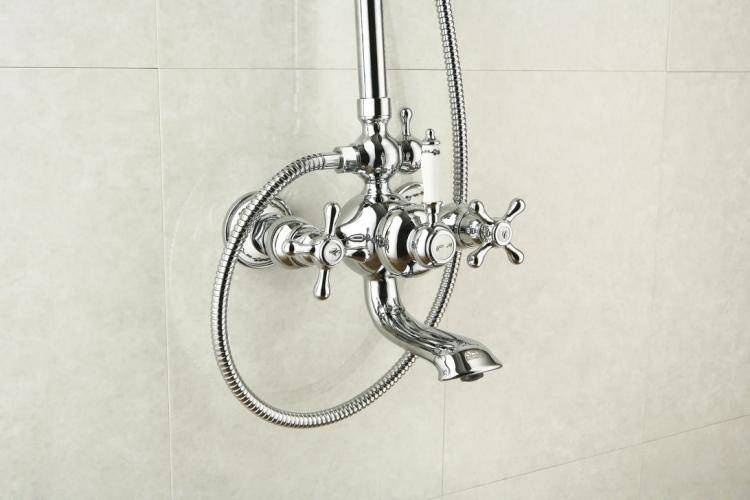 - – wykończenie: CHROM– głowice ceramiczne– białe wstawki wykonane z porcelany– bateria natynkowa wannowa z przełącznikiem mechanicznym– głowica natryskowa 8” (204 mm), okrągła– wąż prysznicowy 2x1/2” 150 cm– haczyk prysznicowy– wylewka prysznicowaEksk