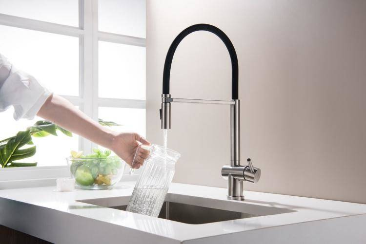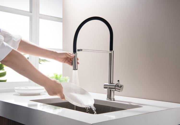 – rączka mieszacza odchyla się do przodu, dzięki czemu można montować baterię pomiędzy zlewozmywakiem podwieszanym a ścianą.