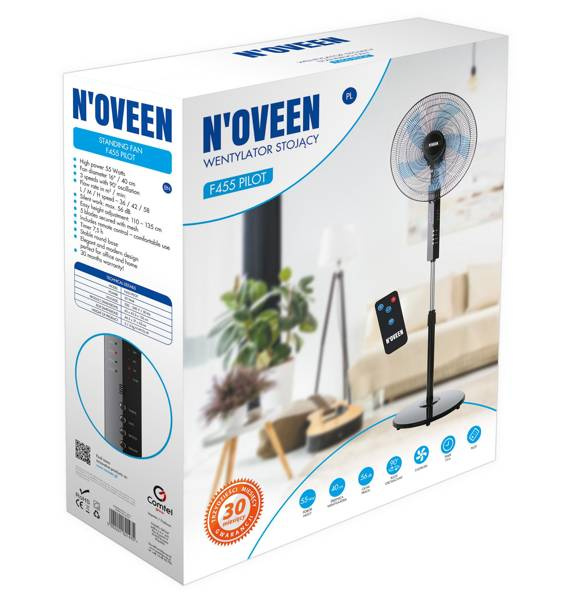 - Duża moc 55 W Średnica wentylatora 16'' / 40 cm 3 tryby prędkości z oscylacją 90 st. Wydajność w m3 / min: L/M/H speed - 36 / 42 / 58 Cicha praca: maks. 56 dB Łatwa regulacja wysokości: 110-135cm 5 łopatek zabezpieczonych siatką Pilot w zestawie - komfort