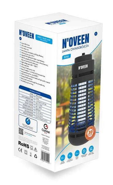 - Lampa owadobójcza IKN6 Lampion Obszar działania do 50m 2 Niskie zużycie energii i wysoka wydajność Działa bez użycia chemii Solidna konstrukcja wykonana z metalu i ognioodpornego tworzywa ABS Do użytku wewnętrznego Przewód zasilający o długości 1,8 m Pobó