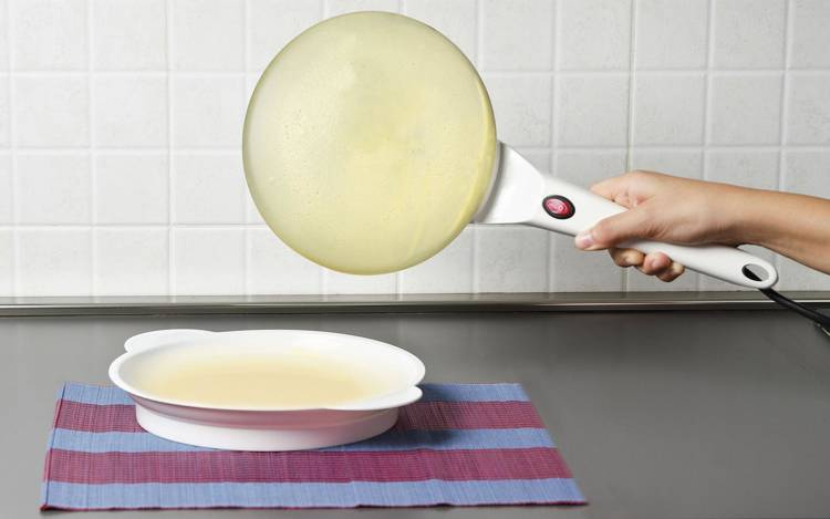- Szybszy i łatwiejszy sposób na naleśniki Zanurzasz patelnie w cieście i w kilka sekund otrzymujesz cienki naleśnik Moc: 800 W Średnica patelni 20 cm Izolowana zimna rączka Gwarancja dwa lata Zasilanie: AC 230 V ~ 50 Hz