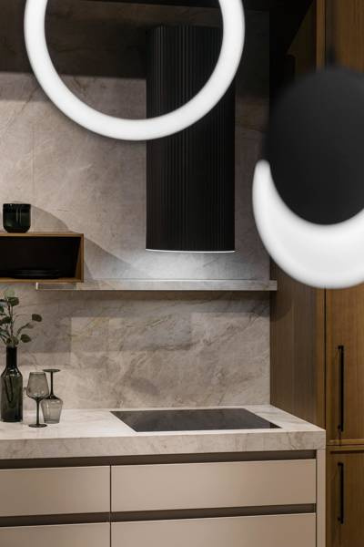 Ciepłe światło LED w okręgu doskonale podświetla płytę kuchenną i zapewnia bardzo dobre warunki do gotowania. Z takim oświetleniem i wentylacją praca w kuchni jest łatwa i przyjemna!
