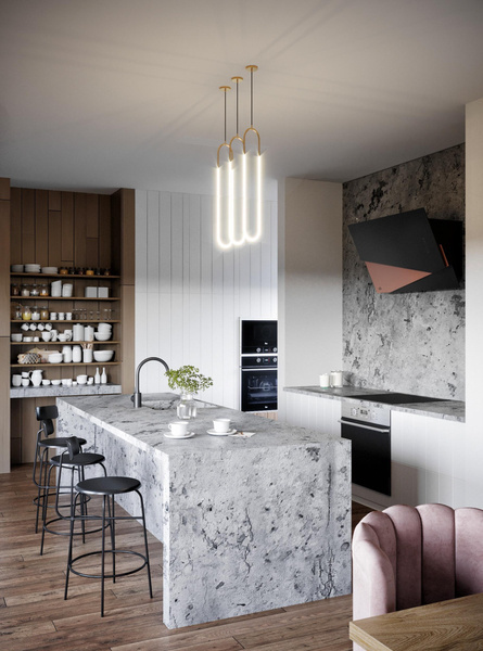 Inspiracją dla okapu Trio był konstruktywizm obecny w sztuce XX wieku i wzajemne oddziaływania prostych form geometrycznych. Konstrukcja urządzenia została zamknięta w bryle perfekcyjnie łączącej struktury hartowanego szkła i stali wysokiej jakości.