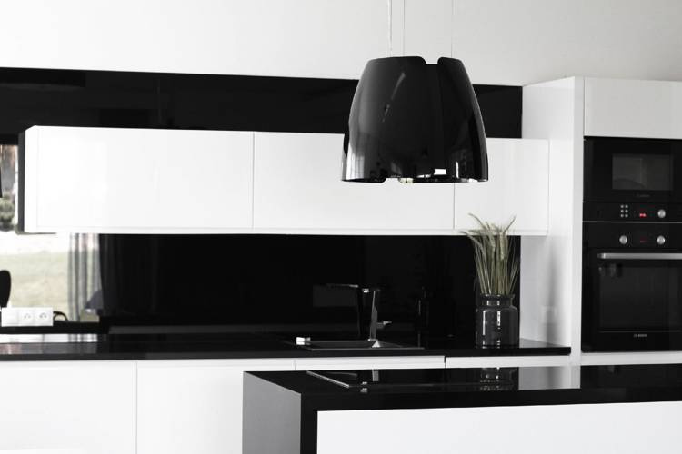 Miss W w kształcie dekoracyjnej czarnej lub białej lampy sprawdzi się w nowoczesnej kuchni i ozdobi przestrzeń między kuchnią a salonem. Montowany jest do sufitu nad płytą grzewczą za pomocą wytrzymałych stalowych linek, by nadać urządzeniu jeszcze więcej elegancji i lekkości.