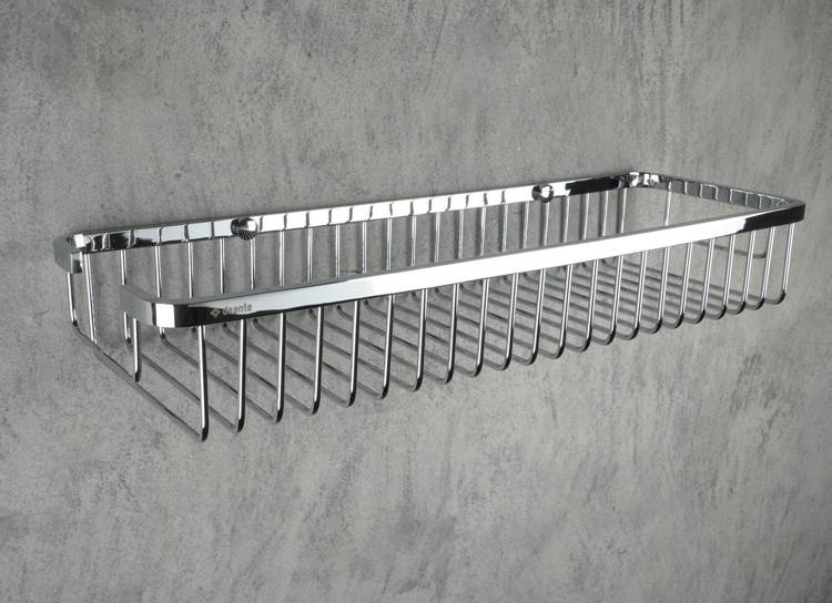 - Estetyczny koszyk prysznicowy wykonany został ze stali nierdzewnej i mosiądzu. Jest bardzo komfortowy w użytkowaniu, a kosmetyki nie spadają, dzięki wysokiemu brzegowi. Możesz trzymać w nim także drobniejsze rzeczy, bo gęsto ułożone poprzeczki na dnie, sk
