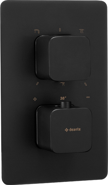 Element zewnętrzny to ostatnia i najbardziej widoczna część podtynkowej instalacji łazienkowej. Montowany jest w łatwy sposób na korpusie BOXu i może być dowolnie wymieniony w czasie zmiany aranżacji pomieszczenia, bez konieczności większego remontu. Składa się z rozety, przełącznika źródła wypływu oraz dźwigni baterii. Nowoczesne, minimalistyczne wykończenie jest spójne z pozostałymi elementami kolekcji i tworzy harmonijną całość. Tradycyjne kształty bez zakamarków ułatwiają również sprzątanie. Element zewnętrzny przeznaczony jest do BOXu termostatycznego. Składa się z rozety i przełącznika funkcji i pokrętła temperatury. System podtynkowy w łazience łączy elegancję, komfort oraz funkcjonalność. W ofercie Deante znajdziesz wiele rozwiązań podtynkowych do wyboru. Możesz zaplanować instalację z użyciem wygodnego BOXa podtynkowego lub też wybrać baterię podtynkową. W obu przypadkach oferujemy praktyczne komplety gotowe do montażu i zawierające wszystko, co powinno znaleźć się w strefie kąpieli. Możesz również samodzielnie dokonać wyboru poszczególnych elementów, tworząc niepowtarzalną aranżację w swoim stylu.Cechy produktu: