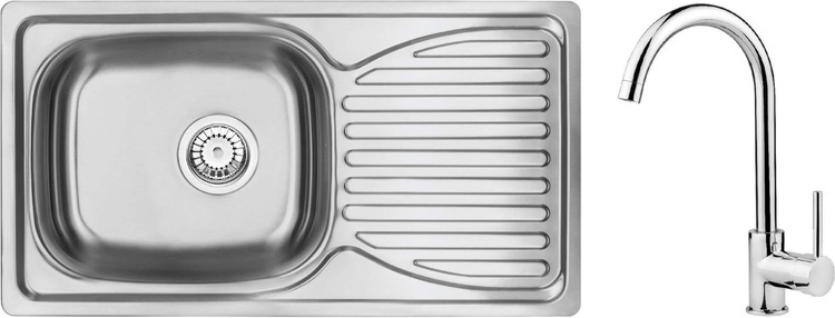 Zlewozmywak stalowy z baterią 1-komorowy z ociekaczem (ZENB0113) - Deante