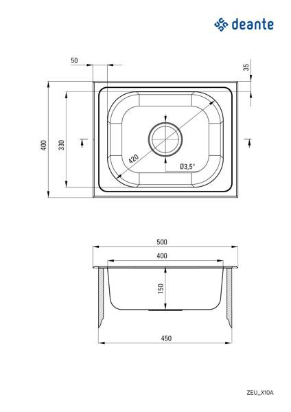 Zlewozmywak stalowy 1-komorowy (ZEU 010A) - Deante