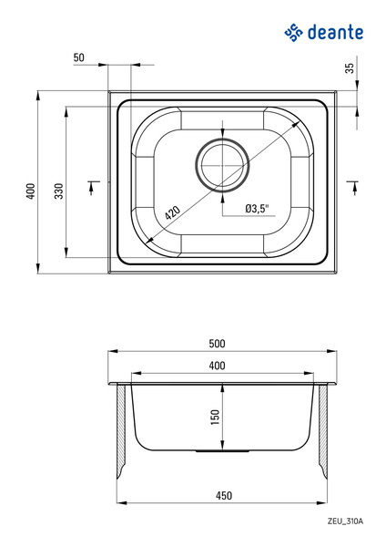 Zlewozmywak stalowy 1-komorowy (ZEU 310A) - Deante