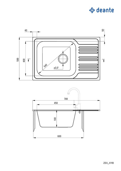 Zlewozmywak stalowy 1-komorowy z ociekaczem (ZEX 011B) - Deante