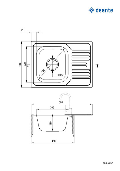 Zlewozmywak stalowy 1-komorowy z ociekaczem (ZEX 311A) - Deante