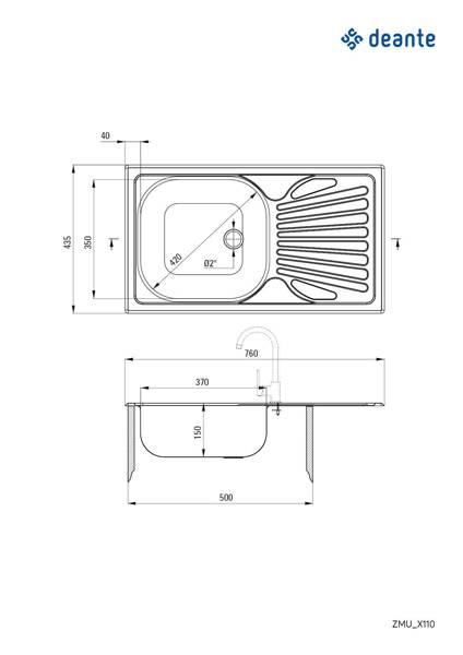Zlewozmywak stalowy 1-komorowy z ociekaczem (ZMU 3110) - Deante