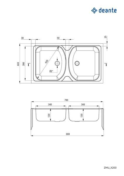 Zlewozmywak stalowy 2-komorowy (ZMU 3200) - Deante