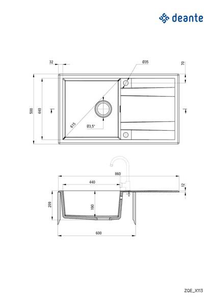Zlewozmywak granitowy 1-komorowy z ociekaczem (ZQE N113) - Deante