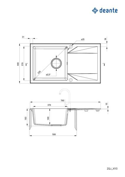 Zlewozmywak granitowy 1-komorowy z ociekaczem (ZQJ 5113) - Deante
