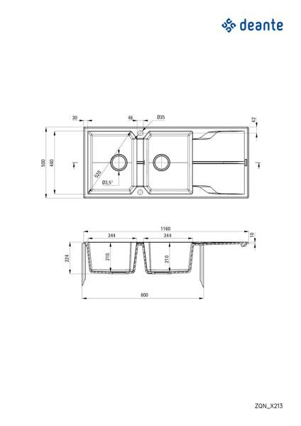 Zlewozmywak granitowy 2-komorowy z ociekaczem (ZQN T213) - Deante
