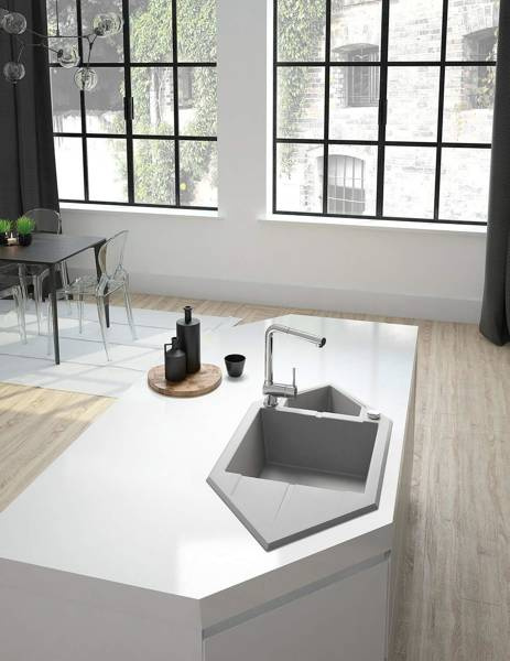 Zlewozmywak granitowy 1.5-komorowy z ociekaczem - Space-Saver (ZQP S653) - Deante