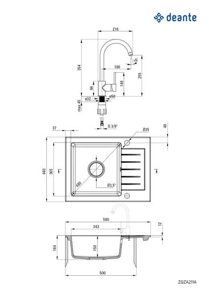 Zlewozmywak granitowy z baterią 1-komorowy z ociekaczem (ZQZA711A) - Deante