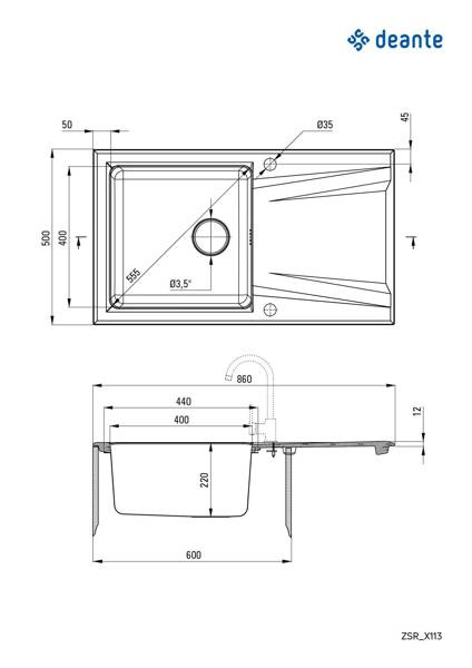 Zlewozmywak granitowo-stalowy 1-komorowy z ociekaczem (ZSR A113) - Deante