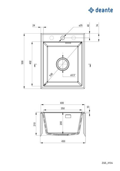 Zlewozmywak granitowy 1-komorowy (ZQE N104) - Deante