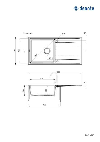 Zlewozmywak granitowy 1-komorowy z ociekaczem (ZQE N713) - Deante