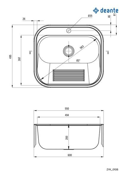 Zlewozmywak gospodarczy 1-komorowy - wpuszczany lub mocowany do ściany (ZYK 010B) - Deante