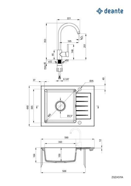 Zlewozmywak granitowy z baterią 1-komorowy z ociekaczem (ZQZAN11A) - Deante