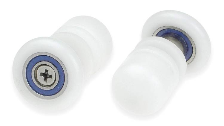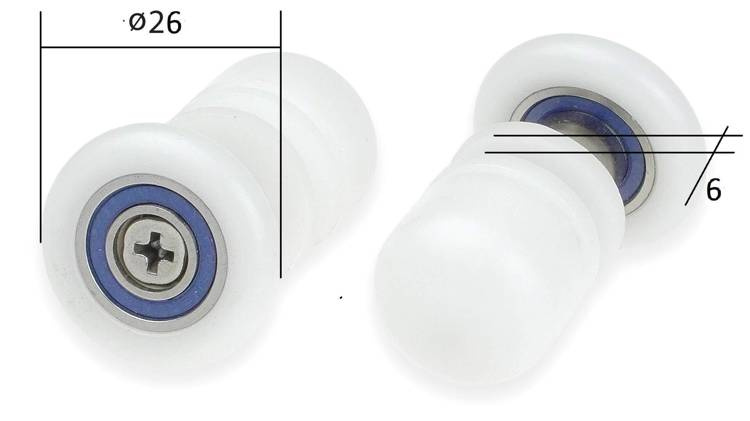 - Rolki przeznaczone są do szyb prysznicowych o grubości 6 mm. Posiadają wysokiej jakości łożyska, dlatego po montażu drzwi natryskowe łatwo się odsuwają. Wykonane są z nylonu, co sprawia, że odpychają wodę i zanieczyszczenia z mydła i osadu kamiennego. Dzi