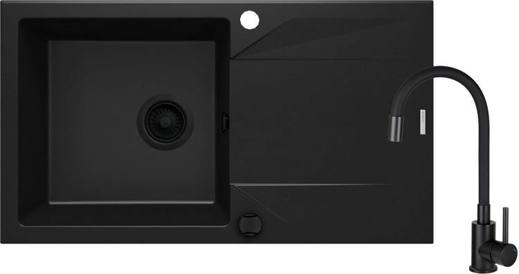 Zlewozmywak granitowy z baterią 1-komorowy z ociekaczem (ZQJJN113) - Deante
