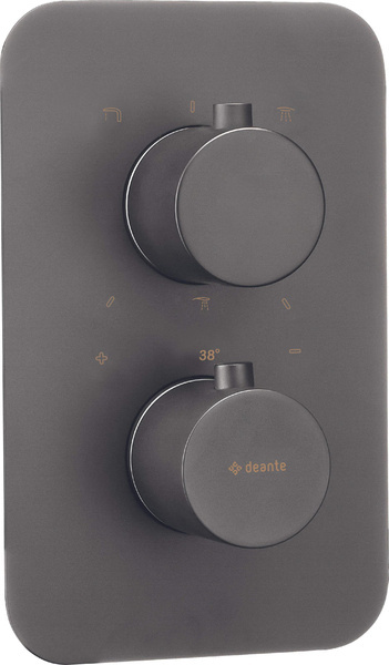 Element zewnętrzny to ostatnia i najbardziej widoczna część podtynkowej instalacji łazienkowej. Montowany jest w łatwy sposób na korpusie BOXu i może być dowolnie wymieniony w czasie zmiany aranżacji pomieszczenia, bez konieczności większego remontu. Składa się z rozety, przełącznika źródła wypływu oraz dźwigni baterii. Eleganckie, minimalistyczne wykończenie jest spójne z pozostałymi elementami kolekcji i tworzy harmonijną całość. Tradycyjne kształty bez zakamarków ułatwiają również sprzątanie. Element zewnętrzny przeznaczony jest do BOXu termostatycznego. Składa się z rozety i przełącznika funkcji i pokrętła temperatury. System podtynkowy w łazience łączy elegancję, komfort oraz funkcjonalność. W ofercie Deante znajdziesz wiele rozwiązań podtynkowych do wyboru. Możesz zaplanować instalację z użyciem wygodnego BOXa podtynkowego lub też wybrać baterię podtynkową. W obu przypadkach oferujemy praktyczne komplety gotowe do montażu i zawierające wszystko, co powinno znaleźć się w strefie kąpieli. Możesz również samodzielnie dokonać wyboru poszczególnych elementów, tworząc niepowtarzalną aranżację w swoim stylu.Cechy produktu: