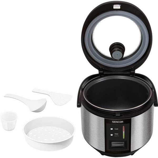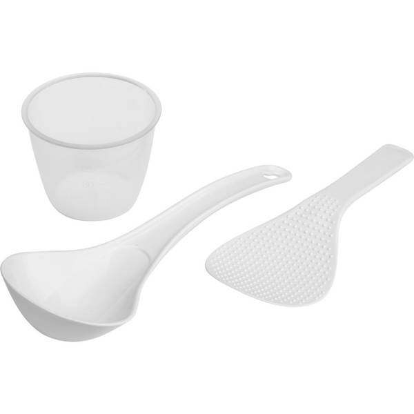 Dostarczane akcesoria: specjalna łyżka do ryżu, miarka do ryżu i wody, kosz parowy