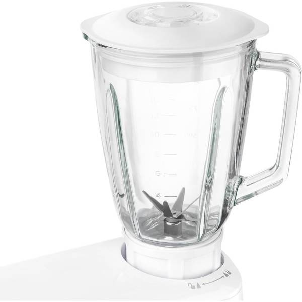 Przezroczysta pokrywa misy z otworem napełniającym do łatwego dodawania ingrediencji w czasie mieszania
