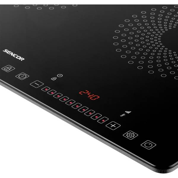 Sterowanie kuchenki oraz poszczególnych funkcji przyciskami dotykowymi. Temperaturę i moc można ustawić ruchem palca w lewą i w prawą stronę za pomocą tzw slidera (suwaka). O temperaturze oraz mocy informuje duży wyświetlacz LCD z czerwonym podświetleniem.