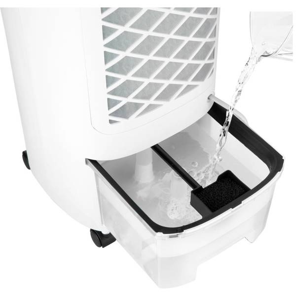 Pojemnik schładzacza zmieści 3 litry wody. Jest zdejmowany, łatwy w napełnianiu i czyszczeniu. Sprawność chłodzenia można zwiększyć użyciem załączonych wkładów do chłodzenia (które wstępnie schłodzisz w swojej zamrażalce).