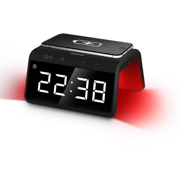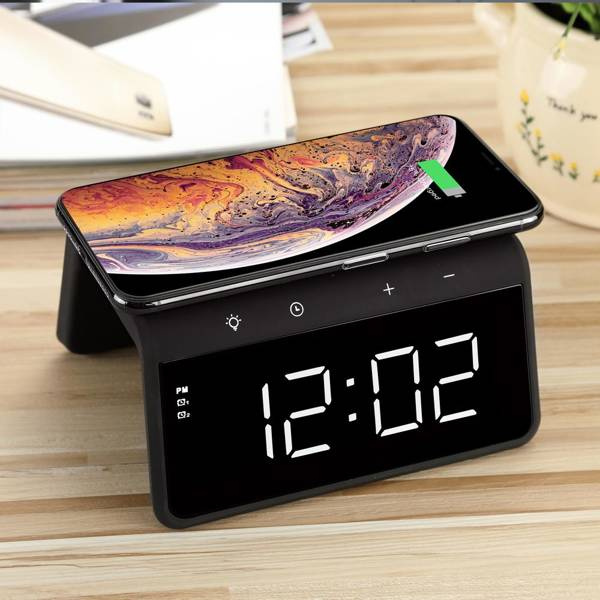 - Cyfrowy budzik z szybką ładowarką bezprzewodową i kolorowym podświetleniem