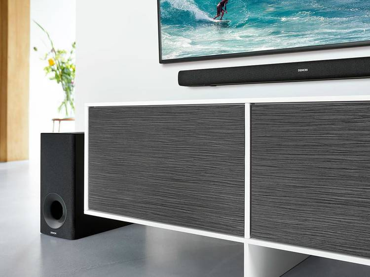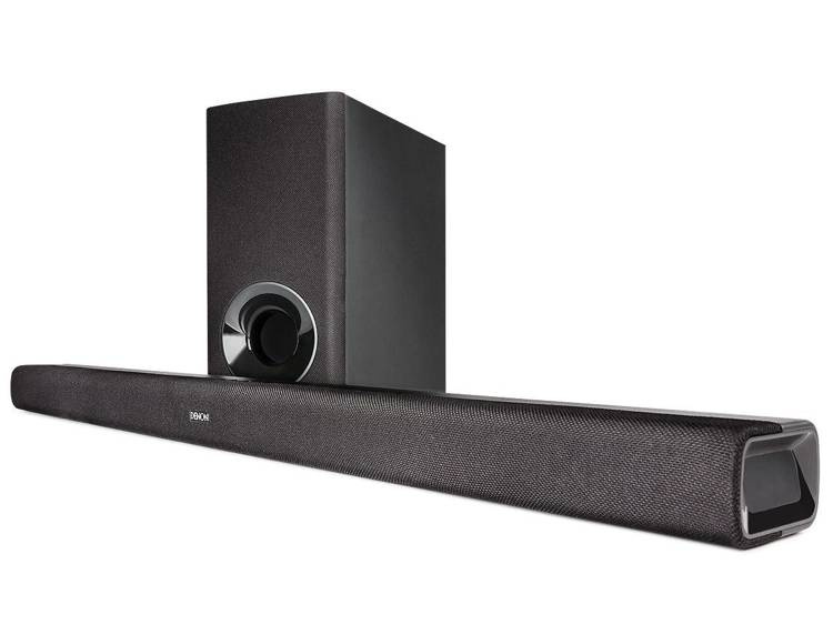 - system wyjątkowo smukłego soundbaru z bezprzewodowym subwooferem: soundbar może być umiejscowiony pod ekranem telewizora lub może zostać zamontowany na ścianie; subwoofer można ukryć w kącie pokoju