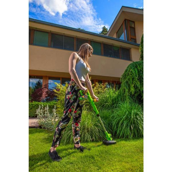 Dodatkowo ta kosiarka strunowa wyposażona jest w teleskopową rączkę oraz regulowany kąt głowicy tnącej, co zapewnia wygodną pracę oraz pozwala dostosować maszynę do różnej wysokości użytkownika i kąta koszenia. Koło prowadzące służy do koszenia wzdłuż ścian i obiektów, a do ochrony roślin dostępny jest łuk dystansowy. Uwaga: Ładowarka i akumulator nie są dołączone do zestawu, ale można używać akumulatorów 2 Ah / 4 Ah, które są kompatybilne z innymi produktami FIELDMANN FAST POWER 20V.