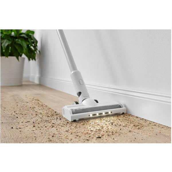 Bezprzewodowy bezworkowy odkurzacz pionowy 2 w 1 to idealny pomocnik do łatwego i doskonałego sprzątania. Wyposażony w cyfrowy silnik 250-wattowy gwarantujący doskonałe wyniki sprzątania wszystkich rodzai powierzchni. Jest lekki i prosty w obsłudze, dzięki czemu z łatwością dotrzesz nawet do trudno dostępnych miejsc i wysokości. Końcówka z oświetleniem LED odkrywa najmniejsze cząstki kurzu i ułatwia odkurzanie w ciemniejszych miejscach.