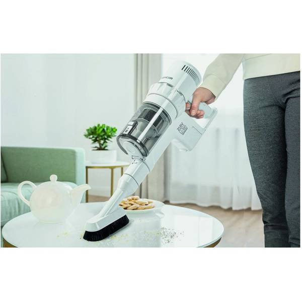 Zdejmowana jednostka ręczna z akcesoriami umożliwia szybkie usuwanie kurzu i zanieczyszczeń z mebli, stołu lub sprzątania samochodu. Cyklonowym system filtracji HEPA zatrzymuje najmniejsze cząsteczki kurzu.