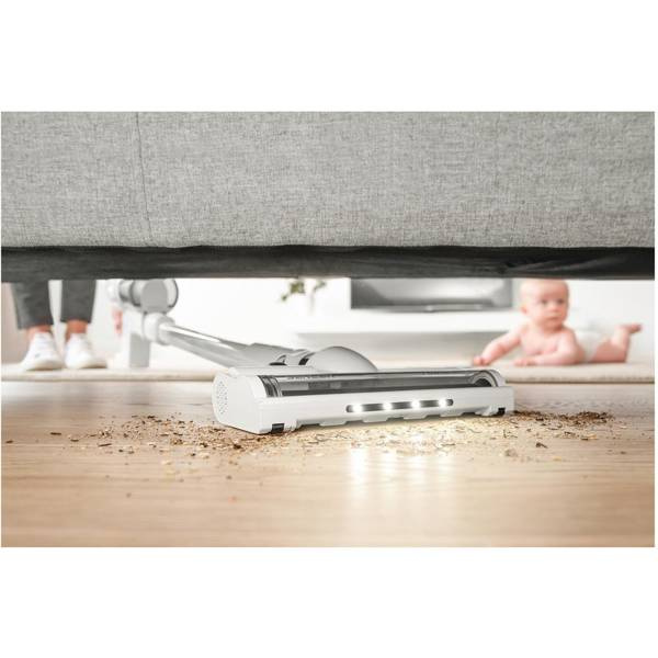- Doskonała obsługa i proste prowadzenie wokół mebli dzięki końcówce obracającej się w zakresie 180° i niskiej masie odkurzacza