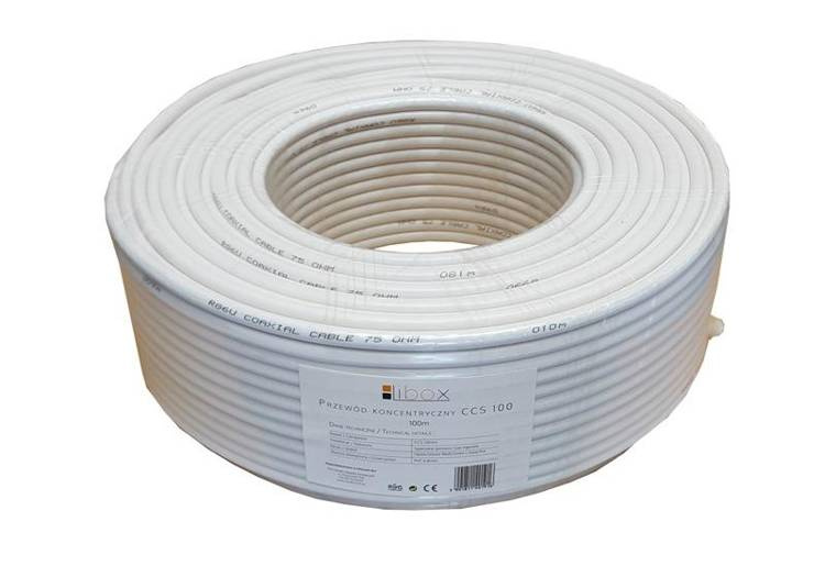 Kabel koncentryczny typu RG6 używany w profesjonalnych sieciach, rozprowadzający sygnał TV, jak również