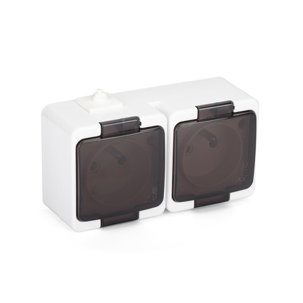 Gniazdo podwójne 2P+Z bryzgoodporne z klapką dymną IP44 NT-6SL Montis