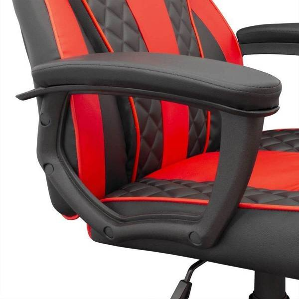 Komfortowe podłokietniki fotela łagodzą zmęczenie ramion. Można go przemieszczać na wielokierunkowych kółkach nylonowych, które wpływają na dużą mobilność. Fotel jest dostępny w kolorze czarno-czerwonym, dzięki czemu będzie doskonale pasował do większości pokoi fanów gamingu. Konstrukcja jest oparta na drewnianej ramie, a materiał, którym jest pokryty, to eko skóra.