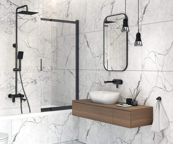Wygodna deszczownica pozwala na swobodne ruchy pod prysznicem, gdyż nie musisz trzymać w ręku słuchawki. Tradycyjne kształty i nowoczesne wykończenie sprawiają, że pięknie prezentuje się w łazienkach industrialnych, skandynawskich, ale także w bardziej tradycyjnych wnętrzach. Trwała i wytrzymała powłoka jest odporna na odpryski i szok termiczny. Deszczownicę łatwo także utrzymać w nieskazitelnej czystości za sprawą systemu Anti-Calc. Osad kamienny z wody wykruszysz z silikonowych dysz jednym ruchem dłoni. Oprócz deszczownicy i głowicy natryskowej, w zestawie znajduje się także wygodna bateria wannowa. Dzięki temu z łatwością połączysz komfortową strefę kąpieli z możliwością skorzystania z szybkiego prysznica. Wylewka ma możliwość złożenia równolegle do ściany po wyłączeniu przepływu. Jest to bardzo praktyczne rozwiązanie, które znacząco zwiększa komfort kąpieli. Zapomnisz o uderzaniu się o wystający element. Seria armatury Alpinia świetnie wpisuje się w aktualnie trendy wzornicze. Uwagę przyciągają bryły o miękkich liniach oraz zaokrąglony korpus. Ich prosta, oszczędna forma przypadnie do gustu zwolennikom nowoczesnych wnętrz, ceniących sobie funkcjonalność oraz dopracowane szczegóły. W ofercie armatury tej serii znajdują się baterie umywalkowe - niska i wysoka, wannowa, natryskowa, bidetowa oraz model kuchenny. Uzupełnieniem kolekcji jest utrzymana w podobnej stylistyce deszczownia. Armatura występuje w 3 modnych wykończeniach: błyszczące chrom i gold oraz matowe nero. Jednak Alpinia to nie tylko baterie. Kolekcja obejmuje również kabiny prysznicowe oraz wanny i parawany nawannowe. Kabiny i parawany wykonane są z hartowanego szkła transparentnego, pokrytego powłoką Active Cover. Cała kolekcja dzięki niewielkim gabarytom stanowi idealne rozwiązanie do małych łazienek.Cechy produktu: